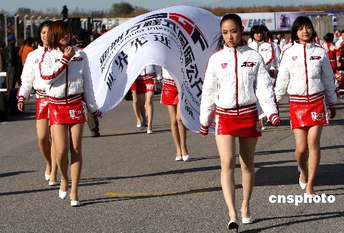 AGF亞洲方程式國際公開賽10月26日在北京京港賽車場舉行,來自中國內(nèi)地和香港的20名頂級(jí)方程式車手參加本站精彩紛呈的較量,眾多美女前來助陣。中新社發(fā) 趙振清 攝