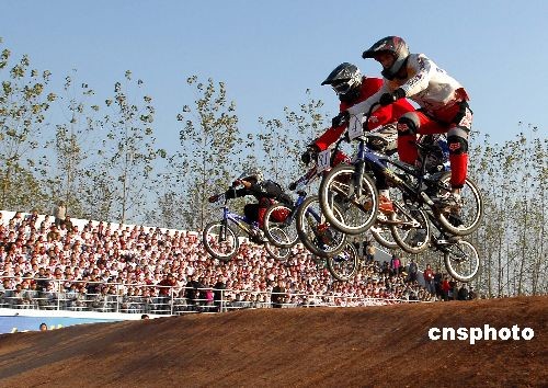 2008年11月10日,由國(guó)家體育總局自行車擊劍運(yùn)動(dòng)管理中心主辦、江蘇省宿遷市人民政府承辦的“洋河藍(lán)色經(jīng)典”全國(guó)自行車BMX(即小輪車)冠軍賽在宿遷開賽。來自全國(guó)16個(gè)省市小輪車專業(yè)隊(duì)、俱樂部,代表著我國(guó)BMX競(jìng)速最高水平的100余名運(yùn)動(dòng)員,參加了成年男子、成年女子、青年女子組的比賽。2008年全國(guó)BMX小輪車冠軍賽共分五站進(jìn)行,11月10日~12日的第一站、第二站比賽在江蘇宿遷舉行。中新社發(fā) 柏志勇 攝