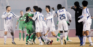 在昨晚的“京津?qū)υ挕敝,主場作?zhàn)的北京國安隊2比2戰(zhàn)平天津泰達(dá)隊,雙方各得1分。在比賽的最后階段,濃重的火藥味和兩度群體沖突也給這場比賽帶來了不和諧音。比賽即將結(jié)束時,郭輝和天津隊譚望嵩之間發(fā)生了肢體接觸。據(jù)郭輝本人透露,當(dāng)時譚望嵩試圖對他飛鏟,在被郭輝躲開后,譚望嵩破口大罵。更不和諧的一幕發(fā)生在賽后,天津隊球員走下場時,以隊長曹陽為首,高舉雙手向看臺上的北京球迷豎起了中指。記者親眼看到,直到走進(jìn)球員通道,曹陽才將高舉的雙臂放下。(記者 周蕭)