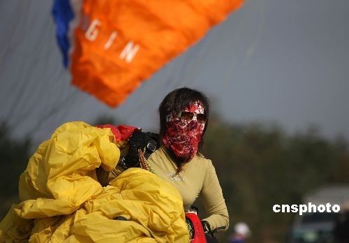 11月14日,2008全國(guó)滑翔傘優(yōu)秀選手賽即將開(kāi)賽。這幾天富陽(yáng)的滑翔基地已經(jīng)云集了近百名來(lái)自全國(guó)各地的參賽選手,經(jīng)過(guò)3天的熱身訓(xùn)練, 參賽選手力爭(zhēng)在15日的比賽中賽出好成績(jī)。 中新社發(fā) 翁榮兒 攝