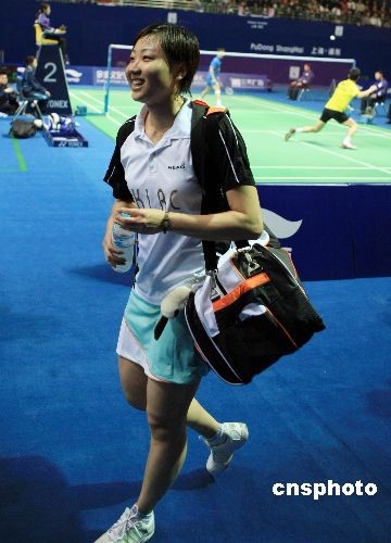 11月21日,在上海進(jìn)行的2008年中國(guó)羽毛球公開賽女子單打1/4決賽中,現(xiàn)世界排名第一、香港選手周蜜以0比2不敵中國(guó)小將朱晶晶,無緣四強(qiáng)。中新社發(fā) 湯彥俊 攝