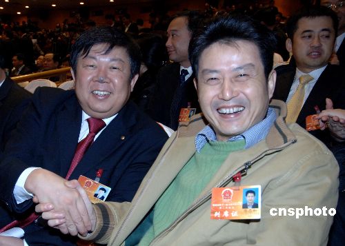 一月十日,全國(guó)人大代表、中國(guó)女排主教練陳忠和(右一)列席福建省第十一屆人民代表大會(huì)第二次會(huì)議。當(dāng)日,福建省第十一屆人民代表大會(huì)第二次會(huì)議在福州開幕。中新社發(fā) 劉可耕 攝