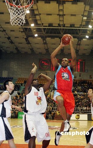 2月18日晚,CBA聯(lián)賽三十七輪打響,坐鎮(zhèn)主場的山西中宇迎戰(zhàn)CBA聯(lián)賽北區(qū)頭名新疆廣匯,由于實(shí)力的差距,山西中宇雖然奮力苦戰(zhàn)但是不敵擁有眾多出色球員的新疆廣匯,最終以83:111輸?shù)舯緢霰荣悺?中新社發(fā) 張云 攝