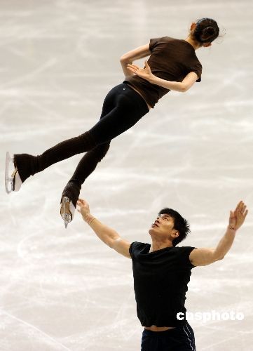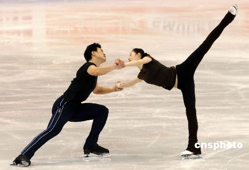 當(dāng)?shù)貢r(shí)間三月二十三日下午,中國(guó)雙人滑選手張丹/張昊在洛杉磯進(jìn)行賽前訓(xùn)練。二00九年世界花樣滑冰錦標(biāo)賽二十四日將在洛杉磯開(kāi)幕。中國(guó)名將、都靈冬奧會(huì)亞軍張丹/張昊和世錦賽冠軍龐清/佟健將向雙人滑金牌發(fā)起沖擊。中新社發(fā) 張煒 攝