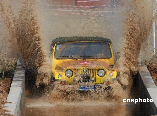 2009年4月29日,“景陽春杯”越野車王爭霸賽在發(fā)動機的咆哮聲中拉開帷幕。本次大賽的最大魅力在于極強的觀賞性和參與性,賽手需要通過越野賽道內36組障礙,尤其需要突破場地內極具粘性的泥地,是通常項目無法比擬的!熬瓣柎罕痹揭败囃鯛幇再,以宣傳賽事以及山東文化產業(yè)及旅游產業(yè)的繁榮景象為主題,全方位展示汽車文化的獨有魅力及無限的發(fā)展空間!熬瓣柎罕痹揭败囃鯛幇再,系山東省體育總局主辦, 安丘市人民政府、山東青云國際旅游度假區(qū)股份有限公司承辦的跨度為五個月的大型賽事。中新社發(fā) 王曉光 攝