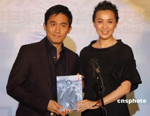 10月26日,由于北京大霧航班延誤,梁朝偉未能準(zhǔn)時(shí)出席下午在蘇州舉行的水城影展——威尼斯電影節(jié)華語獲獎(jiǎng)影片展映日活動(dòng),晚上舉行記者見面會,劉嘉玲全程陪同梁朝偉并轉(zhuǎn)送威尼斯電影節(jié)主席馬爾科·默勒爾贈(zèng)送給他的禮物。中新社發(fā) 邱勇 攝