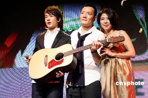 12月14日,許茹蕓《北緯66度》北京新聞發(fā)布會暨阿穆隆加盟種子記者會在北京舉行。經(jīng)過長達(dá)3年的沉淀與生活的歷練,許茹蕓帶著歌迷們的牽掛重新回到大家身邊。在發(fā)布會現(xiàn)場,阿穆隆手持獻(xiàn)花與許茹蕓合唱《男人女人》。一曲唱畢,種子音樂總經(jīng)理田定豐先生走上臺來,贈送阿穆隆一把精美的吉他,正式宣布阿穆隆簽約種子音樂。中新社發(fā) 袁方 攝