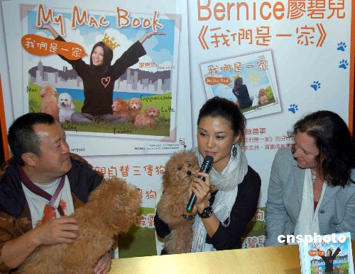 12月17日,香港藝人廖碧兒在記者會上推出首本寵物圖文集《我們是一家》,記載她和這“一家五狗”樂也融融的生潔點(diǎn)滴,著名影人曾志偉出席記者會以示支持。中新社發(fā) 譚達(dá)明 攝