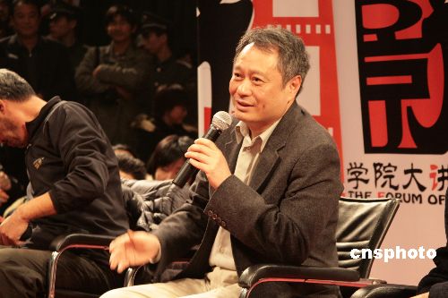 正在熱映的大片《色·戒》的導(dǎo)演李安12月25日做客北京電影學(xué)院,與同學(xué)們進行學(xué)術(shù)交流活動。同時出席的還有著名導(dǎo)演田壯壯及電影學(xué)院院長張會軍。李安還獲得了“北京電影學(xué)院客座教授”榮譽稱號。中新社發(fā) 墮天 攝