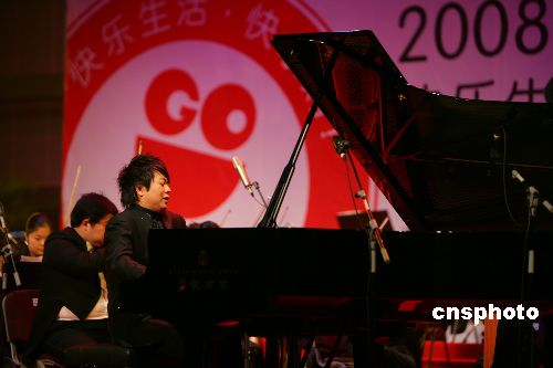 12月28日晚,青年鋼琴演奏家郎朗在長沙舉行“快樂生活快樂購·郎朗乾坤2008新年感恩鋼琴音樂會(huì)”。上半場(chǎng)郎朗和湖南省交響樂團(tuán)合作表演了《黃河》,下半場(chǎng)獨(dú)奏時(shí)間里,郎朗演奏了莫扎特降B大調(diào)鋼琴奏鳴曲等世界名曲。中新社發(fā) 鄧霞 攝