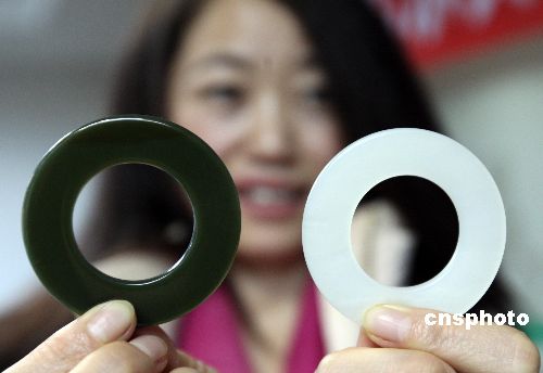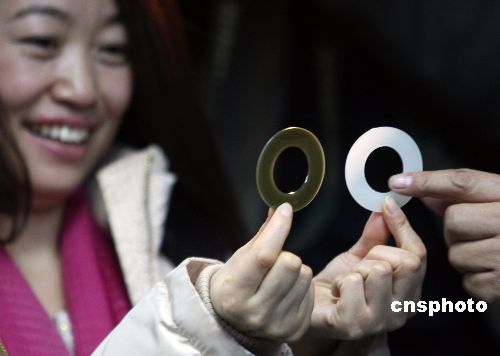 一月二日,北京奧組委和青海省政府正式舉行昆侖玉捐贈儀式。昆侖玉將作為2008北京奧運(yùn)會獎牌用玉。青海昆侖玉主要成分由“投山石”和“陽起石”組成的纖維狀微晶結(jié)合體,有“白玉”、“青玉”、“青白玉”、“黃玉”、“墨玉”等,豐富的色澤便于區(qū)分金、銀、銅獎牌的等級,是國際珠寶界目前認(rèn)定的優(yōu)質(zhì)級別寶玉石種類。中新社發(fā) 任海霞 攝