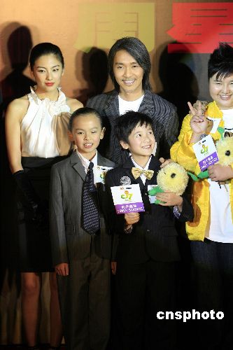一月二十三日晚,周星馳身兼導(dǎo)演、編劇、演員,歷時(shí)三年打造的電影《長江七號(hào)》在香港舉行全球首映禮,特首曾蔭權(quán)夫婦等百位政界、商界、演藝界嘉賓出席觀看,支持香港創(chuàng)意工業(yè)。中新社發(fā) 王麗南 攝