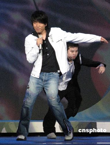 春節(jié)即將來(lái)臨,北京朝陽(yáng)政法界2008《魅力朝陽(yáng) 平安奧運(yùn)》大型春節(jié)慰問(wèn)演出舉行。演出集演唱、小品、樂(lè)器演奏、雜技等綜藝性節(jié)目于一體,演員陣容強(qiáng)大,既有像羽泉、黃圣依、許茹蕓、沙寶亮、韓紅這樣的國(guó)內(nèi)演藝界知名藝人,又有警員自編自演的歌曲、小品。沙寶亮為北京警員高歌。中新社發(fā) 任海霞 攝