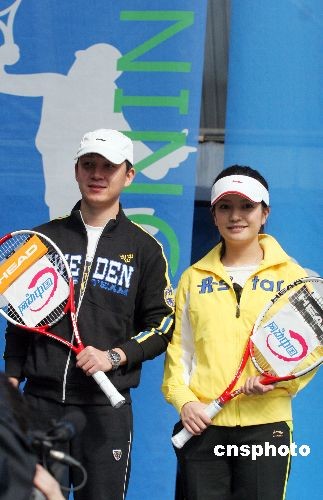 3月27日,2008“中網網動中國”推廣活動在北京航空航天大學網球館舉行。趙薇、潘粵明作為2008“中網網動中國”的代言人出席該活動。中新社發(fā) 博芽影像 攝