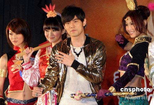 4月15日,在線游戲《真·三國無雙Online》在臺北舉行公測發(fā)布會,周杰倫擔任其2008最新代言人,并由其親自操刀特地為此創(chuàng)作并執(zhí)導MV《無雙》。中新社發(fā) 杜洋 攝