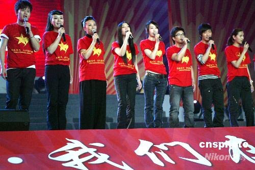 5月25日晚,由13家國家一級社會組織共同主辦的“情暖汶川·我們在行動——全國社會組織抗震救災募捐義演”在北京首都體育館舉行,來自社會各界的1萬余名觀眾參加了此次募捐活動,F場籌得款物將通過中華慈善總會全部捐給地震災區(qū)。中新社發(fā) 趙雋 攝