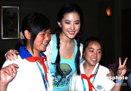 6月2日,89名來自四川北川、彭州、寶興、崇州等地震災(zāi)區(qū)失去親人的兒童,乘坐南方航空海南分公司的愛心專機(jī)抵達(dá)海南三亞,進(jìn)行為期半個(gè)月的“愛心呵護(hù)、陽光行動(dòng)”心靈呵護(hù)之旅。著名影星劉亦菲當(dāng)日專程趕到孩子們?nèi)胱〉娜齺喬煊蚨燃倬频昕赐。中新社發(fā) 尹海明 攝