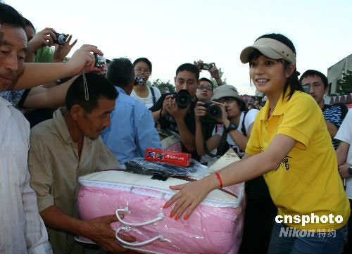9月10日,由香港華光功德會組織的“情系四川——中秋月餅暖萬心慰問活動”在綿陽拉開序幕,當(dāng)晚,影視明星趙薇在與災(zāi)區(qū)學(xué)生歡聚的中秋晚會上,點(diǎn)燃孔明燈,為四川祈福。中新社發(fā) 霍潺 攝