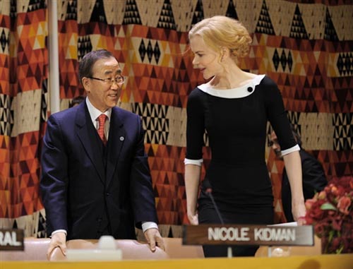 妮可亮相聯(lián)合國總部 潘基文為其扶座椅
