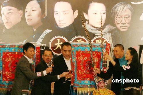 十二月十九日,著名導(dǎo)演陳凱歌攜黎明、陳紅、孫紅雷等在香港舉行記者會(huì),為《梅蘭芳》在香港上映造勢,英皇集團(tuán)主席楊受成等出席。據(jù)悉,電影《梅蘭芳》在中國內(nèi)地上映以來,票房已突破一億元人民幣。中新社發(fā) 武仲林 攝