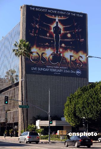 第八十一屆奧斯卡電影金像獎官方海報一月二十九日正式公布,一幅巨型官方海報懸掛在位于好萊塢的美國電影藝術(shù)與科學(xué)學(xué)院大樓外。海報以黑色與金色為基調(diào),以奧斯卡頒獎現(xiàn)場“柯達(dá)劇院”的舞臺作為主要背景,“小金人”的剪影在金色光芒的映襯下顯得莊重而大氣。中新社發(fā) 張煒 攝