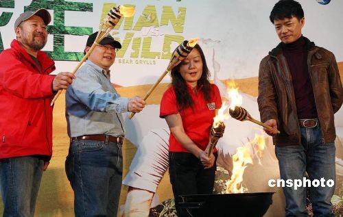 3月18日,Discovery探索頻道在北京推出全球觀眾狂熱追捧的系列探險(xiǎn)節(jié)目《荒野求生》(Man VS Wild)播映儀式,將給中國(guó)地區(qū)觀眾帶來(lái)終極野外生存指南,同時(shí)舉行中國(guó)特輯《荒野求生》啟動(dòng)儀式,《荒野求生》節(jié)目主持人兼探險(xiǎn)家貝爾吉羅斯亦將8月來(lái)中國(guó),首次拍攝《荒野求生》中國(guó)特別專輯!痘囊扒笊分袊(guó)特輯將于2010年2月與中國(guó)電視觀眾見(jiàn)面,并將在Discovery探索頻道全球電視網(wǎng)播出。電視劇《我的團(tuán)長(zhǎng)我的團(tuán)》主演段奕宏亮相中國(guó)特輯《荒野求生》啟動(dòng)儀式。中新社發(fā) 錢興強(qiáng) 攝