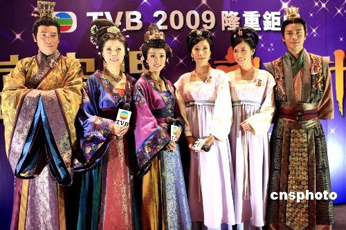 三月二十三日,《宮心計(jì)》在香港會(huì)展中心舉行開(kāi)幕儀式。圖為演員佘詩(shī)曼、米雪、關(guān)菊英等在儀式上合影。中新社發(fā) 張勤 攝