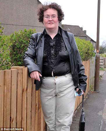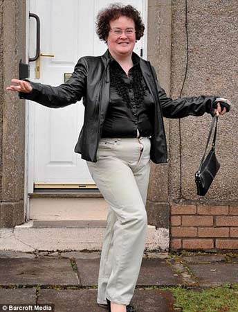 6日,經(jīng)過一番打扮,蘇珊走出家門。面帶招牌式的笑容,蘇珊在自家門前大擺POSE,讓媒體記者拍個(gè)夠。開心的蘇珊并沒有注意到當(dāng)時(shí)的形象并不得體——她忘記將褲子的拉鏈拉上。由于褲子太緊而拉鏈又沒拉,里面的衣服大有往外擠的陣勢(shì)。老式黑色襯衣緊緊地繃在她身上,更凸顯了她的贅肉。