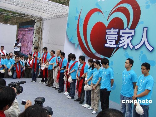 2009年5月10日,在“5·12”汶川大地震震中映秀鎮(zhèn),李連杰攜吳彥祖、林心如、鐘麗緹、柯以敏、鐘漢良、沈星、張杰等眾多明星義工,開展中國紅十字會壹基金主辦的“壹家人,壹起走”大型戶外援建災(zāi)區(qū)公益活動。來自各地的300多名媒體記者、志愿者和明星們一同走完了2公里的災(zāi)區(qū)路。在半小時的路程中,完成了李連杰成立緊急救援聯(lián)盟等許多心愿,眾明星們的表現(xiàn)令人感動。 壹基金是由國際巨星李連杰發(fā)起的立足于中國的國際性公益組織,分別在中國大陸及香港地區(qū)、美國和新加坡設(shè)立了辦事機構(gòu)。在中國大陸地區(qū),壹基金與中國紅十字總會合作,成立了“計劃”,致力于傳播公益文化,搭建公益平臺,以推動全國公益事業(yè)的發(fā)展。中新社發(fā) 善平 攝