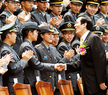 馬英九說,軍校畢業(yè)生將來都是革命軍人,不要被人看不起,看輕。將來要壯大自己,保衛(wèi)別人,要有使命感、榮譽(yù)感。