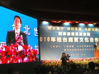 據(jù)報道,廣西團來臺進行經(jīng)貿(mào)文化交流,今日在圓山飯店舉行“2010年桂臺經(jīng)貿(mào)文化合作論壇”。郭聲琨表示,簽署ECFA是兩岸關(guān)系上的里程碑,有助于提升兩岸競爭力,因此,他希望兩岸未來能在產(chǎn)業(yè)、市場和文化上進一步開拓和交流。