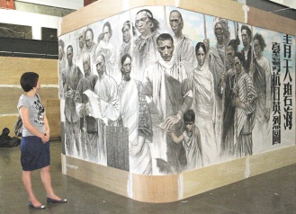 據報道,這幅抗日巨畫,由五十多名大陸畫家、歷史學家花了五年半時間集體創(chuàng)作八年抗戰(zhàn)的故事,按真人比例實錄一千多名歷史人物,期間畫家歐治渝甚至用眼過度差點失明。巨畫按真人比例實錄一千多名歷史人物,畫卷高二米,總長逾八百米,相當于小學操場繞四圈,展場橫跨臺北中山紀念館內外,堪稱“史上最高難度”。