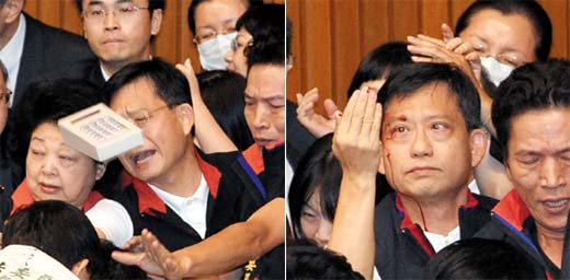 中新網(wǎng)7月9日電 據(jù)臺(tái)灣《聯(lián)合報(bào)》報(bào)道,臺(tái)灣“立法院”昨天為了審議兩岸經(jīng)濟(jì)合作框架協(xié)議(ECFA)爆發(fā)肢體沖突,國民黨“立委”吳育升被砸傷眼角,民進(jìn)黨“立委”郭玟成攀爬主席臺(tái)時(shí)摔落。砸傷吳育升的民進(jìn)黨“立委”黃偉哲表示,深感遺憾與歉意,愿意賠償醫(yī)藥費(fèi)。