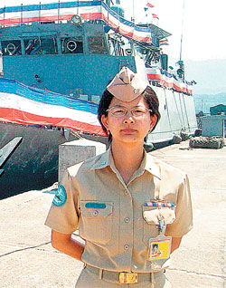 中新網(wǎng)7月12日電 據(jù)“中央社”報道,臺海軍2010年6月產(chǎn)生第二位女性艦長。1976年出生的林美菁因資歷完整、績效優(yōu)異,獲派任為“鄱江號”少校艦長。對于將在海上獨(dú)當(dāng)一面,她表示有十足信心勝任。