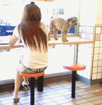 據(jù)悉,19日上午九點(diǎn)多,臺(tái)東一對(duì)情侶帶著一只小狗到某快餐店,兩人坐在長(zhǎng)條餐桌的位子用餐,直接把狗放在桌上;狗就在餐桌上走來(lái)走去或躺或坐,直到用餐完畢,兩人才抱著狗離開。