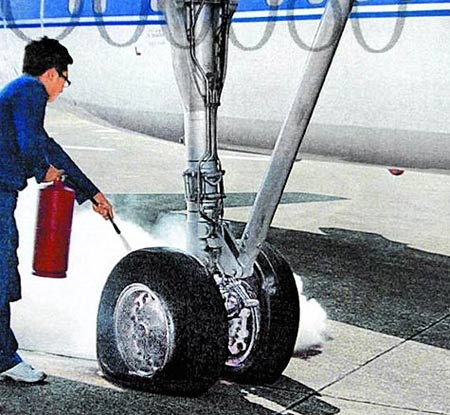 2009/11/01 FK-5003執(zhí)行馬英九座機(jī)任務(wù),在臺(tái)中清泉崗基地落地后滑行,右主輪煞車(chē)盤(pán)過(guò)熱,導(dǎo)致來(lái)令片及輪胎損傷熱熔并冒煙起火。