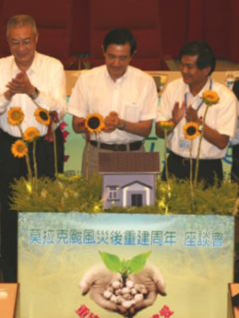 “行政院長(zhǎng)”吳敦義則表示,在過去這段時(shí)間,社會(huì)各界齊心戮力,從救災(zāi)搶險(xiǎn)、災(zāi)后復(fù)原到逐漸步向重建的階段。在此過程中系由民間慈善團(tuán)體、企業(yè)與當(dāng)局?jǐn)y手合作,經(jīng)由特別條例簡(jiǎn)化相關(guān)程序,當(dāng)局提供土地給慈善團(tuán)體建造房屋,并提供生活與就業(yè),希望早日達(dá)成重建目標(biāo)。