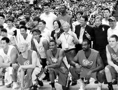 7月28日晚,姚基金慈善賽臺北站比賽在臺北小巨蛋體育館上演。由臺灣和大陸的籃球運動員組成心連心隊,與NBA明星隊進行了精彩的比賽,吸引了近萬名觀眾到場觀看。盡管NBA美國明星隊只有8人上場比賽,但他們?nèi)耘f以137∶103勝了。