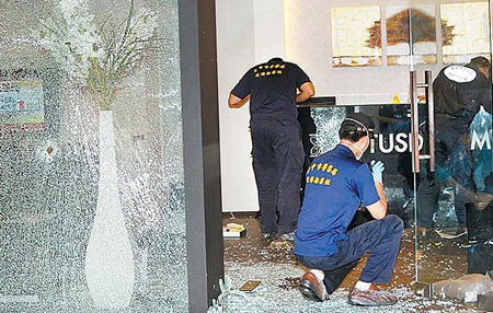 今年五月二十八日下午,“少年殺手”廖國豪闖入臺(tái)中角頭翁奇楠(四十歲)開設(shè)的日月生物科技公司,近距離朝翁奇楠、賴榮振(三十九歲)連開十八槍,翁奇楠當(dāng)場(chǎng)死亡、賴榮振就醫(yī)后不治,案發(fā)后曾查出有警員在場(chǎng)打麻將,昨日再傳現(xiàn)場(chǎng)彈殼與彈頭數(shù)量不符,引發(fā)現(xiàn)場(chǎng)遭破壞、在場(chǎng)警員開槍的質(zhì)疑,但臺(tái)中市長(zhǎng)胡志強(qiáng)表示:“揣測(cè)的,未必是真的!
