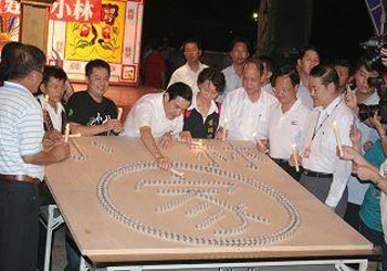 去年八八水災(zāi)重創(chuàng)高雄縣甲仙鄉(xiāng)小林村,400多位村民慘遭活埋或失蹤。馬英九和“行政院長”吳敦義,在8日晚間南下,在杉林鄉(xiāng)的小林村組合屋基地參加點燈祈福晚會,并和小林村民共進晚餐。