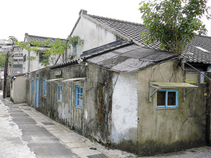 一位旁邊的住戶告訴記者,眼前的四四南村,就是由兵工廠的員工及眷戶們居住的區(qū)域,原地曾是日軍陸軍庫(kù)房。整體建筑為“魚骨狀”架構(gòu),依然保持著當(dāng)年的樣貌,窄窄的過(guò)道,低矮的屋頂,灰黑色的磚墻,狹小的居住面積。據(jù)統(tǒng)計(jì),四四南村原計(jì)劃在1999年隨眷村改建政策拆除,但在1991年3月,被臺(tái)北市政府列為“歷史建筑物”,并在1993年10月,改為信義區(qū)公民會(huì)館,將眷村內(nèi)的生活用博物館的方式展出,并提供市民租借為展覽活動(dòng)場(chǎng)地。原建物并未變動(dòng),連圍墻也都還保留著。