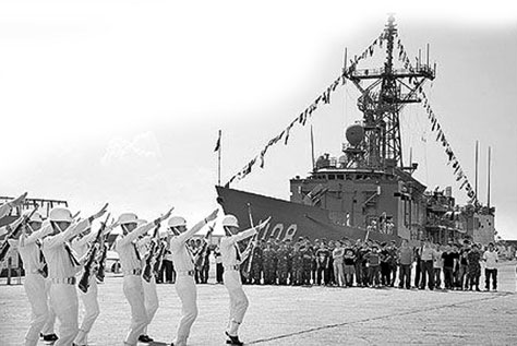 臺(tái)軍中年頭最久的傳統(tǒng)莫過于“海龍王大典”。據(jù)臺(tái)媒報(bào)道,臺(tái)海軍的敦睦遠(yuǎn)航支隊(duì)每年要穿越赤道一次,所有艦艇一字排開,橫著穿過赤道。同時(shí)艦艇上的汽笛拉響一分鐘,艦尾則噴水柱以示慶祝。除值班官兵外,所有人都要到甲板集合,舉行 “海龍王大典”。儀式由支隊(duì)長或艦長主持,他們帶頭焚香禱告并獻(xiàn)上牲果祭拜,祈求上天保佑航行平安。接著,甲板上會(huì)出現(xiàn)由海軍官校學(xué)生扮演的“海龍王” 和“蝦兵蟹將”。他們身穿龍王服、手持龍王杖、頭戴龍王面具,煞有介事地“出巡”,隨后向全艦官兵宣讀“圣旨”,同意艦艇通過赤道線!昂}埻酢边會(huì)頒發(fā)“過赤道證書”,由艦長恭敬接過。