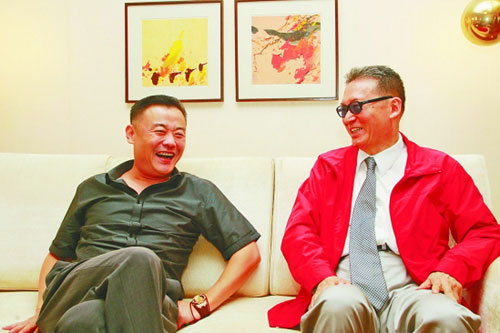 海派清口代表人物周立波和著名指揮家余隆昨天也特別前來(lái)拜訪李敖。周立波王熙鳳一樣人未進(jìn)門(mén)聲先傳,“大師大師”地叫進(jìn)門(mén)來(lái),邊握手邊贊李敖帥,沒(méi)想到李敖很較真,“你贊美一個(gè)75歲的人好帥?”“真的?你有75歲?我本來(lái)以為這個(gè)50歲的人長(zhǎng)得有點(diǎn)老!