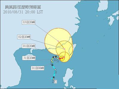 中新網(wǎng)9月1日電 據(jù)“中央社”報道,臺“中央氣象局”31日晚上發(fā)布2010年第6號臺風(fēng)“萊羅克”海上臺風(fēng)警報。1日清晨2時30分,再發(fā)布陸上警報,臺灣西南部陸地及澎湖進入警戒范圍。