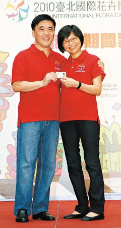 郝龍斌上午并送上一張花博“全期間票”給妻子,作為中秋節(jié)和明年的生日禮物,兩人應(yīng)媒體要求,甜蜜合影,郝龍斌看起來并未受近來“花系列”風(fēng)暴影響。