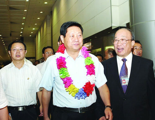 今晚(13日),隨著一架臺灣華航客機降落在臺北桃園機場,以代省長趙正永為團長、副省長景俊海為副團長的陜西省代表團抵達寶島臺灣,開始以“文化交流、認親拜友、科技聯(lián)盟”為主題的“2010臺灣陜西周”活動。臺北世界貿(mào)易中心秘書長趙永生、臺灣陜西同鄉(xiāng)會會長兼董事長王廣生和西安臺資企業(yè)協(xié)會會長孫芳山等率有關(guān)方面代表到機場迎接。