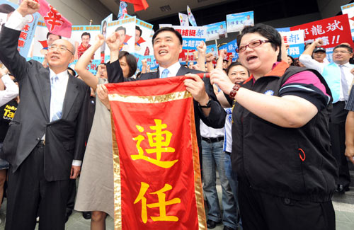 郝龍斌15日下午由高閬仙、吳伯雄及大批藍營市議員、里長參選人陪同,前往臺北市選舉委員會辦理登記,F(xiàn)場有支持者請來舞龍舞獅、有人獻上象征“包中”的包子與粽子,不少人高喊“郝龍斌凍蒜(當(dāng)選)”、“連任成功”。