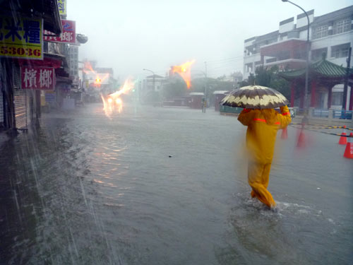 臺灣“氣象局”指出,“凡那比”中心點(diǎn)離開臺灣本島后,高雄縣市和屏東地區(qū)降雨以每小時超過100毫米速度增加,“氣象局”19日晚7時將高雄山區(qū)與屏東山區(qū)總降雨量再上修至1200毫米及1400毫米。
