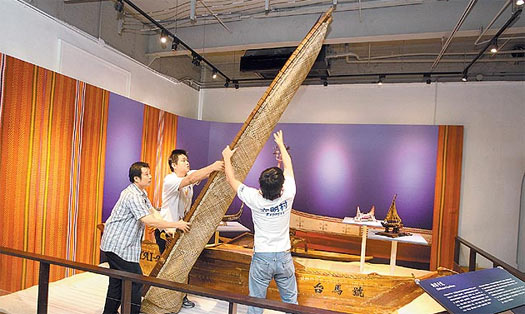 “國史館”接收后,花了近二十萬元修復(fù)。這次展覽,“臺馬號”因體積龐大,只能平放船身,無法豎起藤編的船帆。