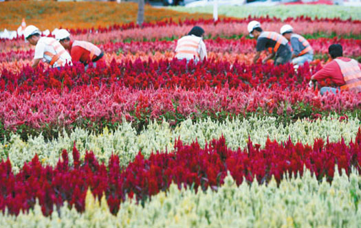 中新網(wǎng)10月9日電 據(jù)臺灣《聯(lián)合報》報道,今天是臺北花博會開放測試第一天,圓山公園展區(qū)最大賣點(diǎn)之一正是面積超過七公頃的花海。超過625萬株花卉“一波未平一波又起”分布展區(qū)各處,不論是花卉種類、栽種密集度及面積都稱霸花博四大展區(qū),其中地景花海及爭艷館的“七道彩虹”最值得一看。